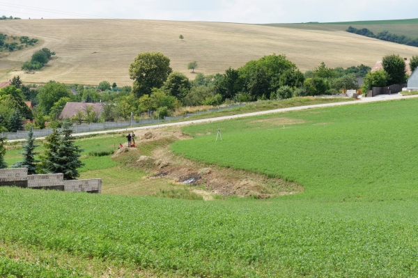 Nižšie položenú záchytnú priekopu vzhľadom na jej dĺžku (cca 100m) a menšiu náročnosť spracovania sa podrobne mapuje prostredníctvom pozemného laserového skenera.