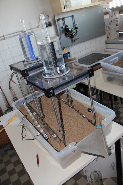 Zadažďovacie experimenty simulátorom dažďa s rôznou intenzitou zrážok, vegetačným pokryvom a pri rozdielnych počiatočných podmienkach.